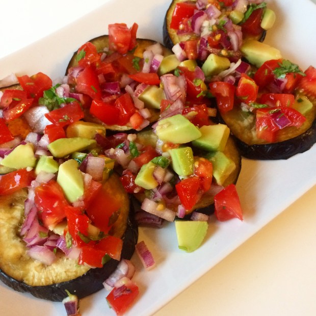 I was super looking forward to dinner, and it didn’t disappoint. I love aubergine at the best of times, and topped with Pico de Gallo, it sounded like a dream! Again, I hold my hands up to tweaking the recipe – it suggests four tablespoons of olive oil for one aubergine, but I didn’t want to eat nearly 500 calories of oil in one sitting, so I used half. Even then, the recipe calorie count was 502 calories – pretty high for such a light meal, but totally worth it. Again, you’ll see that this is topped with avocado and tomato, but the recipe called for added parsley, onion, lime and garlic. I didn’t pop any chilli in, and I resisted the urge to add coriander instead of parsley, and I really enjoyed it. The lime juice tasted super sweet for some reason!