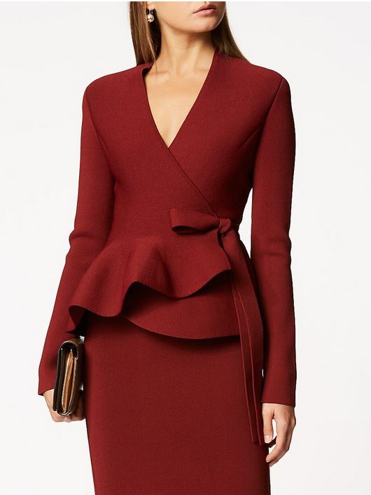 Scanlan Theodore Crepe Knit Wrap Jacket in Garnet Duchess of Sussex Meghan Markle Previous Next Published October 27, 2018 at 530 × 707 in Royal Tour Australia 2018: Every Item Worn By Meghan, Duchess of Sussex